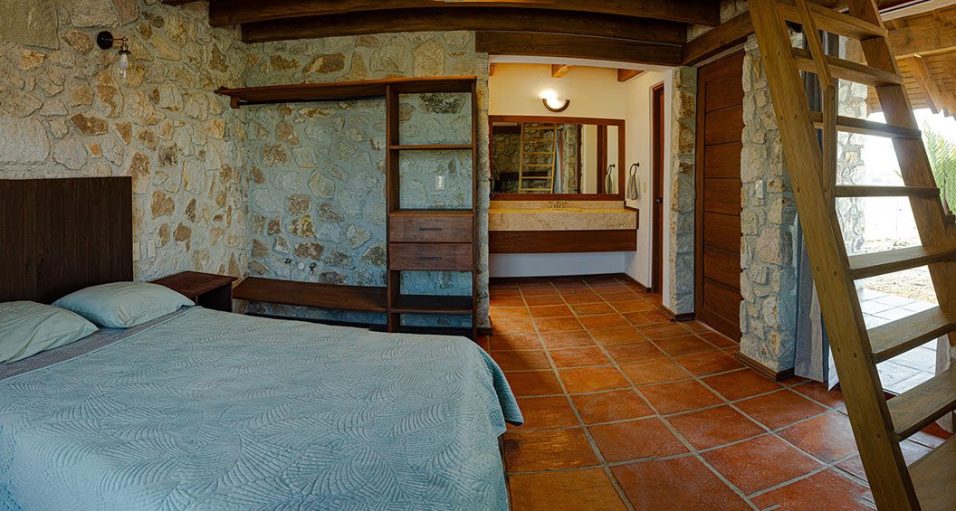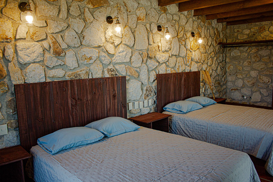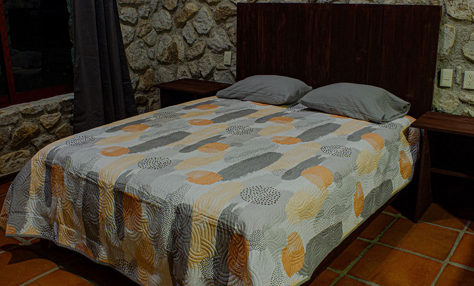 Confortable cabaña con tres camas, Queen Size, baño, regadera y terraza incluida